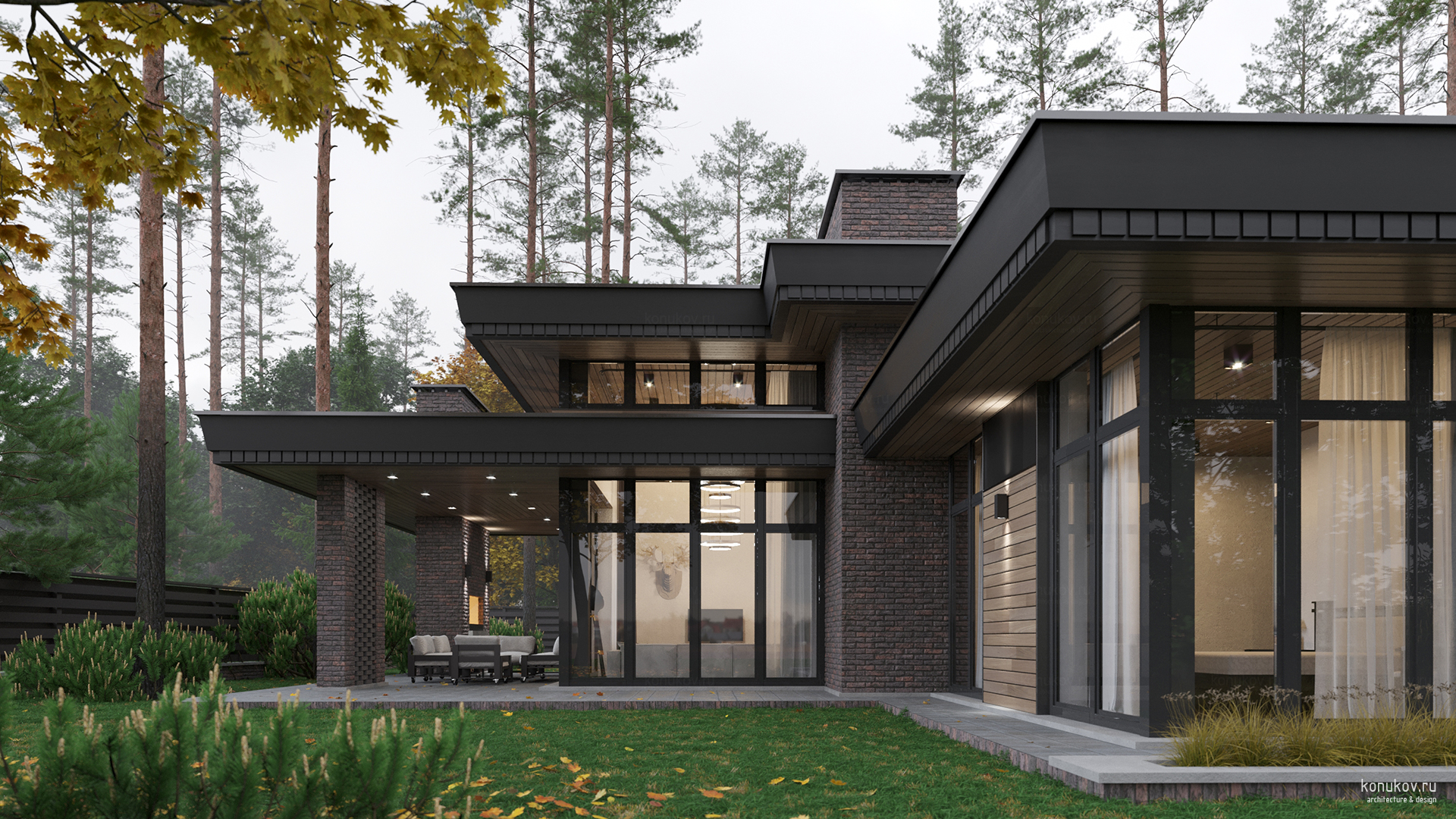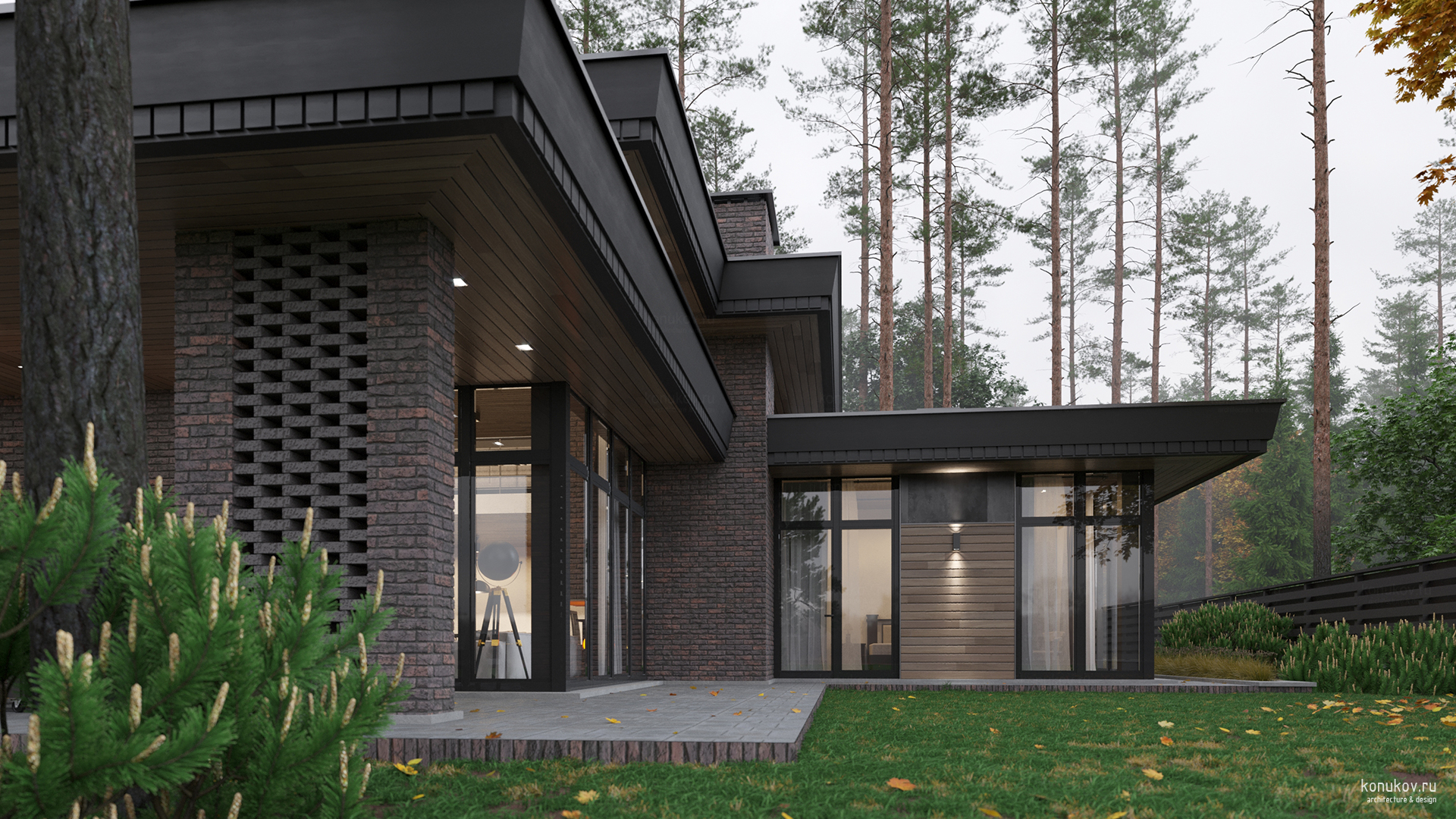 Это готовый проект. Несущий монолитный каркас. Монолитные плиты, стены, балки и колоны. Идея в том, чтобы всю головную боль скинуть на монолит. А после того, как монолитный каркас готов, начинается "ремонт". Монолитному каркасу уже ничего не будет, и объект можно завершать неспеша, хоть 3 года. Заполнение стен: полнотелый одинарный керамический кирпич и гипсовые блоки V ~80 м3. Утепление стен: минераловатные плиты 200 мм. Утепление кровли: 150-180 мм экструдированный полистирол. Кровля плоская мембранная балластного типа, S кровли: 432 м2. Окна: алюминиевый профиль, S окон 129 м2. Отделочные материалы: кирпич одинарный полнотелый, деревянный планкен. S отделки фасадов: 321 м2.